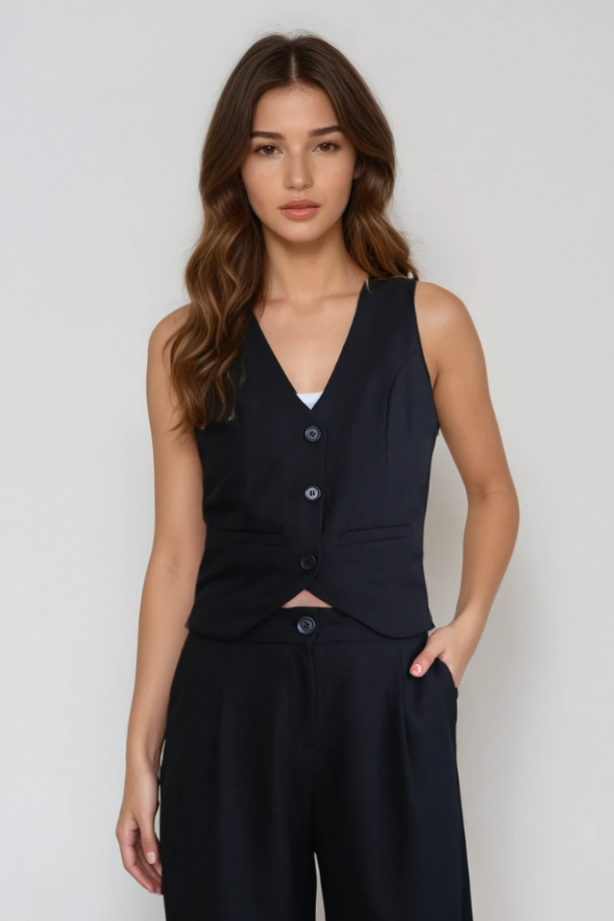 En af de største fordele ved Natalie Vesten er dens utrolige alsidighed. Denne sorte polyester vest er en sand kamæleon i din garderobe: