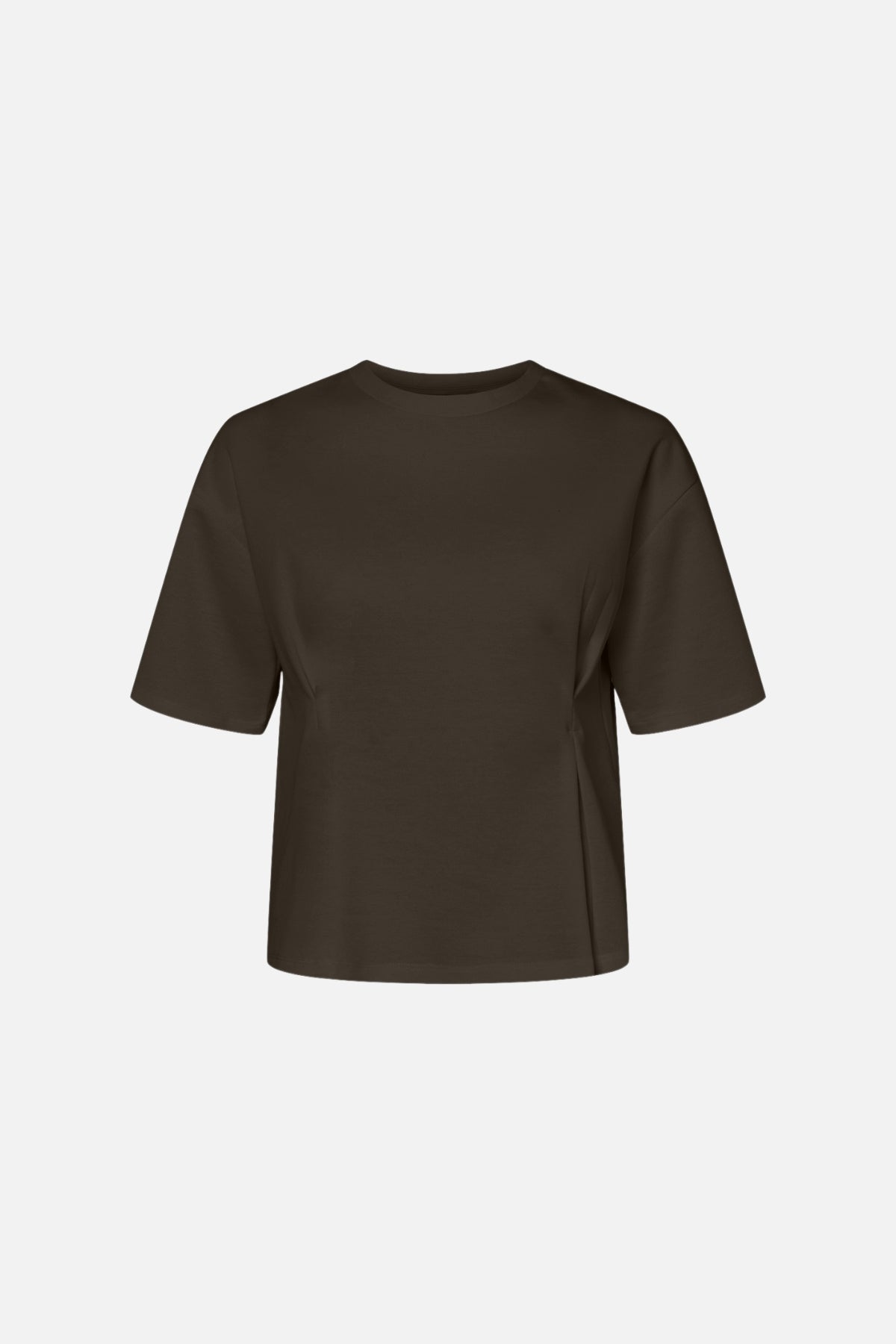 Uanset din personlige stil, vil denne figursyet T-shirt hurtigt blive din go-to top for et væld af looks. Den rige brune farve er et fantastisk alternativ til sort eller hvid og tilføjer dybde til din påklædning.