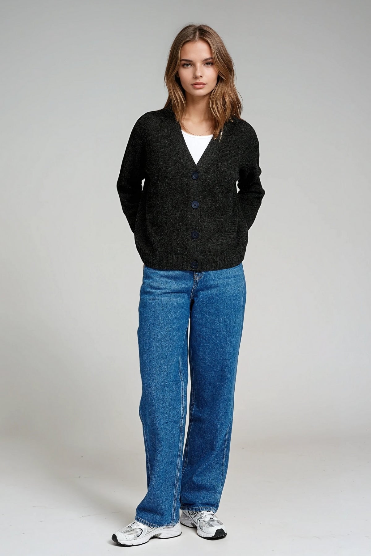 Strikket Cardigan - Mørkegrå Meleret